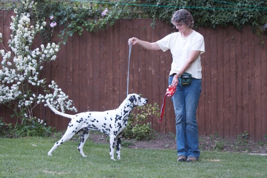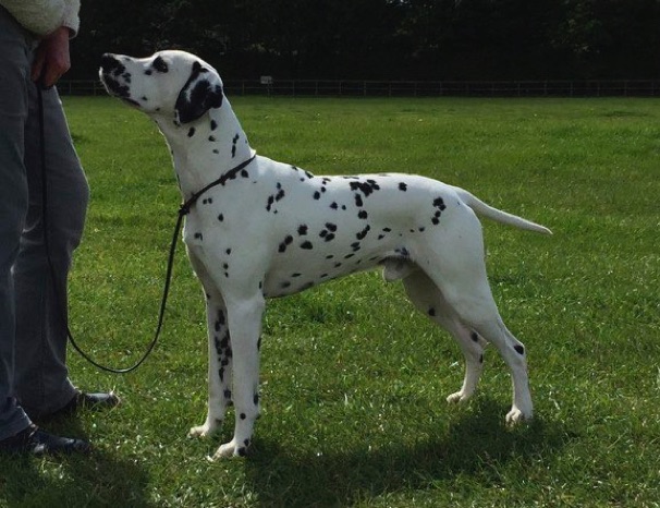 He is stunning looking boy with excellent construction and free movement and a lovely temperament. We are so excited about having him here. He will play such an important part in helping to put the normal uric acid gene back into Dalmatians and in preventing stone forming in our lovely dogs.